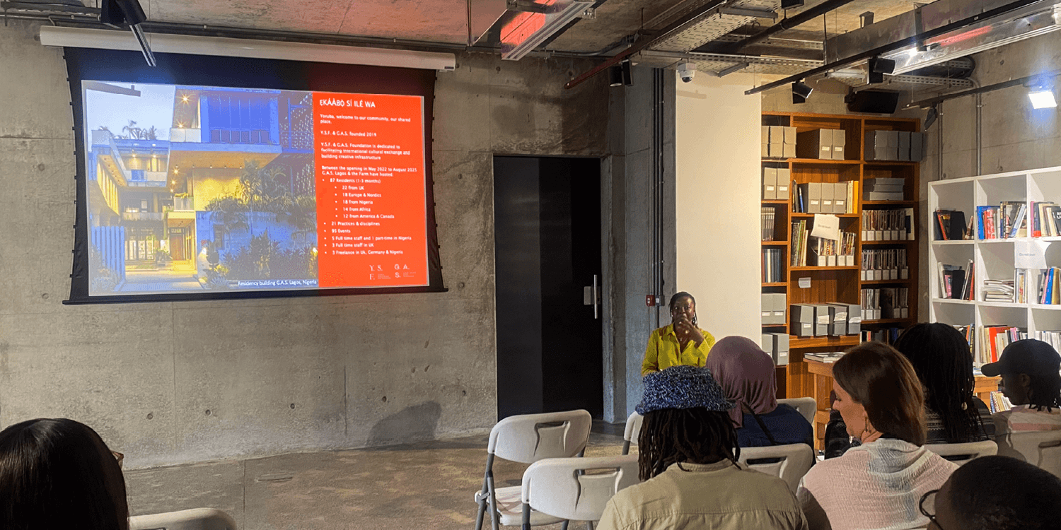 The session opened with an introductory presentation by Moni Aisida, Executive Director of G.A.S. Foundation, who reflected on the organisation’s journey from inception to its present-day activities. She spoke about the Foundation’s origins, its mission to support the development of new work and ideas, foster cultural understanding, and break down barriers of privilege, while also introducing its sister organisation, Yinka Shonibare Foundation (Y.S.F.).