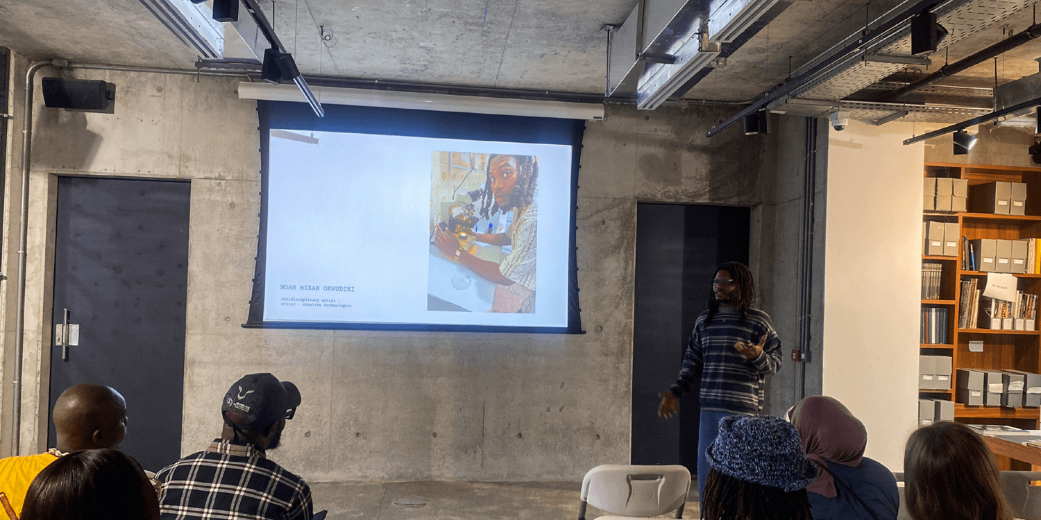 Following her, Okwudini Noah, a participant in the Ìmòra Arts Intensive, spoke about his experimental practice across sound, image, writing, and collective work. He reflected on how the intensive helped him expand his methodologies, slow down, and consider new approaches to collaboration and collective practice, opening up fresh opportunities for his work.