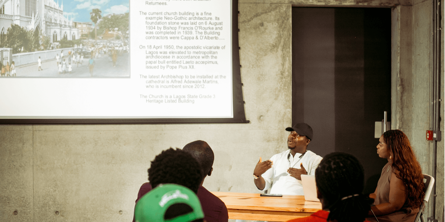 The session opened with a welcome address from Pelumi, who introduced the intentions behind her research and reflected on how her residency in Lagos had facilitated new connections, including her meeting with Oludamola. She highlighted their shared interest in the cultural histories of Afro-Brazilian returnees, which formed the foundation of the conversation. Oludamola then built on this by sharing his own research, using photographs and archival materials from Lagos, Ibadan, and Abeokuta, including images taken by Pelumi during her residency, to guide the discussion.