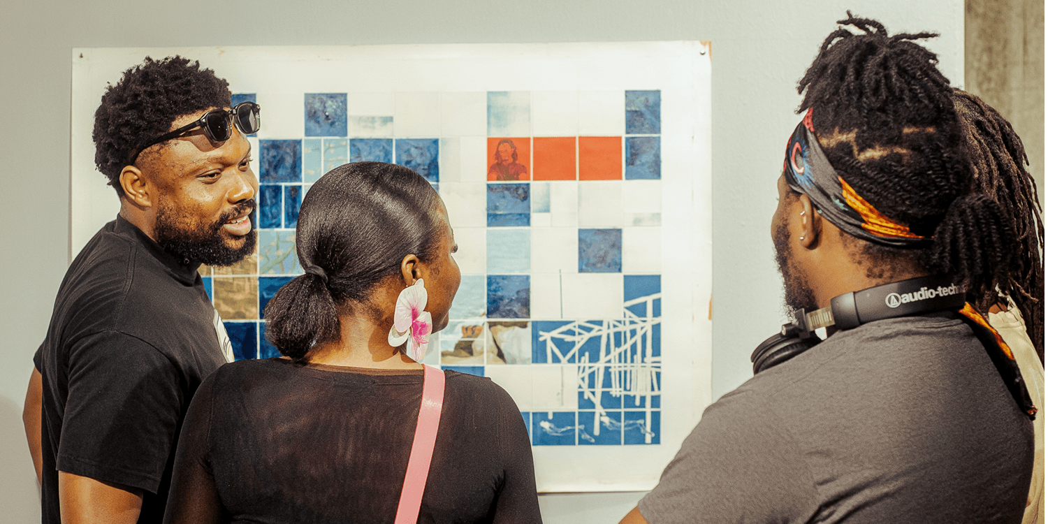Adeoluwa Oluwajoba is a Lagos-based mixed-media artist whose practice combines painting, collage, and image-transfer processes to construct layered visual compositions of bodies and landscapes. Working across photographic and traditional printmaking techniques, he explores the mechanics of image reproduction and the ways meaning is assembled through fragments. Adeoluwa’s 3-week residency at G.A.S. Lagos ran from 9 March to 3 April 2026. During this period, he focused on experimenting with cyanotype printing on fabric, alongside conducting research at the G.A.S. Library and the Centre for Contemporary Art Library. His residency process involved moving through the city to gather images and observe public spaces, using these encounters to inform his ongoing body of work, Alice in a Daydream. The residency culminated in The Cyanotype Studio on 2 April 2026, a two-part programme comprising a hands-on cyanotype printing workshop and an open studio presentation. The session introduced participants to cyanotype as both a photographic technique and a drawing tool, guiding them through processes of image-making using both photographic negatives and hand-drawn forms, before inviting audiences into a presentation of works developed during the residency. Adeoluwa’s residency was generously supported by Deutsche Bank.