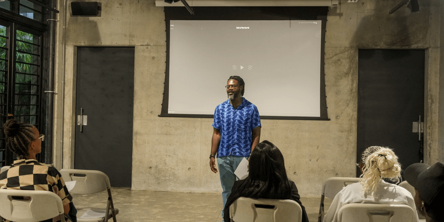 Following the screening, Kwadwo led a guided discussion focused on helping young artists explore their personal narratives, cultivate meaningful inspiration, and develop an artistic practice that is both authentic and transformative. Drawing on his own experiences, Kwadwo encouraged participants to consider how their environments, histories, and lived experiences inform their work. He shared how his upbringing within the International Institute of Tropical Agriculture (IITA), surrounded by one of West Africa’s largest preserved rainforests, shaped his understanding of the natural world as a partner in creative thinking, influencing his artistic process and approach to observation.