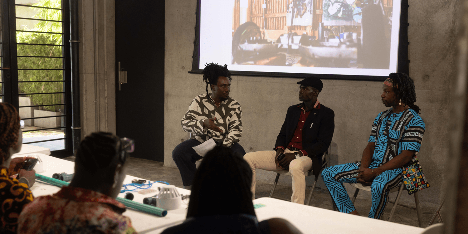 Jonathan Chambalin in converation with Ryan Tenney and Edward Ogani at One Bulb At A Time at G.A.S. Lagos.