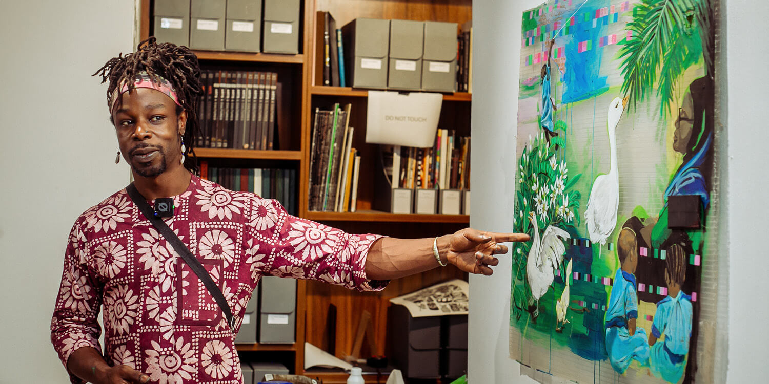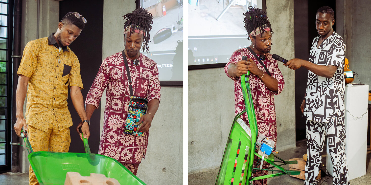 Building on this research, his presentation wove together fieldwork, documentation, and artistic practice, highlighting the development of his exhibition at the Centre for Contemporary Art (CCA) in collaboration with MatriAér Lab, a Lagos-based multidisciplinary collective exploring women-centered visions of future living. Their project, The Breathing City, imagines an urban system designed according to the rhythm of breath, linking architecture, labor, and domestic life through shared movement and sound. Ryan also reflected on his recent participation as a featured artist for Jelenke Magazine’s live painting event. The session concluded with a live Arduino programming demonstration, followed by a Q&A, giving attendees the opportunity to engage more deeply with the ideas presented.