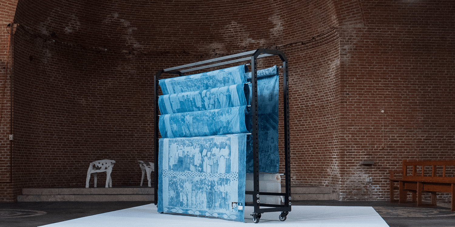 2023 G.A.S. Fellowship Awardee Kosisochukwu Nnebe recently debuted her new installation, Guaranteed Nigerian Adire Eleko – Available by the Yard!, at UNFAIR Amsterdam’s Post-Tropical Imagination exhibition, curated by artist-curator Serana Angelista. In this ambitious work, Nnebe examines the social and cultural life of Nigerian textiles, staging the beginnings of a fabric store where handmade adire cloth is offered “by the yard” to underscore how textiles circulate, create kinship, and generate new forms of community through practices like Aso-Ebi. Building on her earlier explorations of adapting adire processes into photographic work, Nnebe re-creates archival images that foreground the political significance of dress codes in Nigeria’s history—particularly the central role of women and the wrapper garment in landmark protests such as the 1929 Aba Women’s War and the 1949 Abeokuta Women’s War. Other designs in the project trace the cassava used in adire production back to its Indigenous Taino origins in the Caribbean and South America, weaving unexpected histories of migration, knowledge exchange, and resistance. At once playful and critical, the title and branding of the installation reference the dominance of Dutch wax print in African markets while aligning with current efforts to revitalize Nigeria’s textile industry. Through this layered investigation, Nnebe positions fabric not only as material culture but also as a powerful site of memory, protest, and transnational connection.