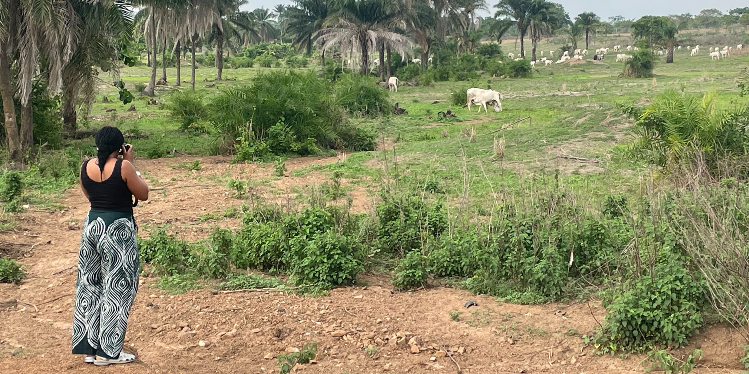 Semilore photographing cows on the way to Saki as part of her parallel research into nomadic lifestyles in Nigeria