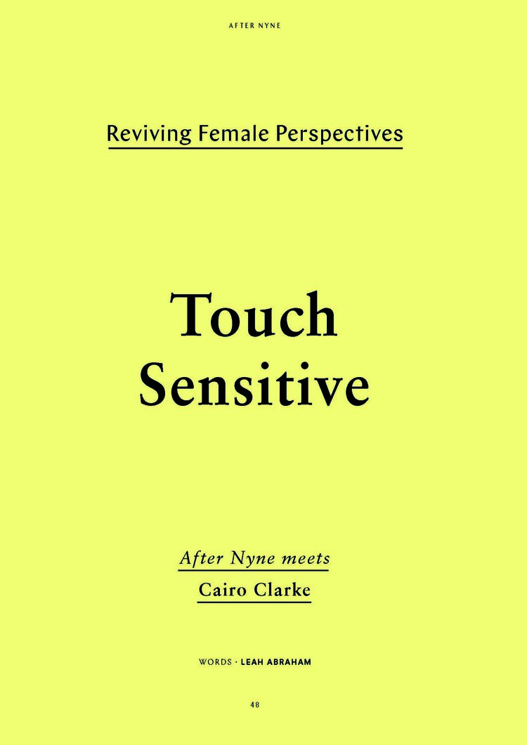 Touch Sensitive is a series of individual art events, exploring representations of “female” bodies by dismantling the body as a category or “whole” and creating open channels for discourse. The body can be imagined as a database, a store accessible in various ways. Each iteration in the series is an entry into this vast, every increasing database through the concept of touch.
