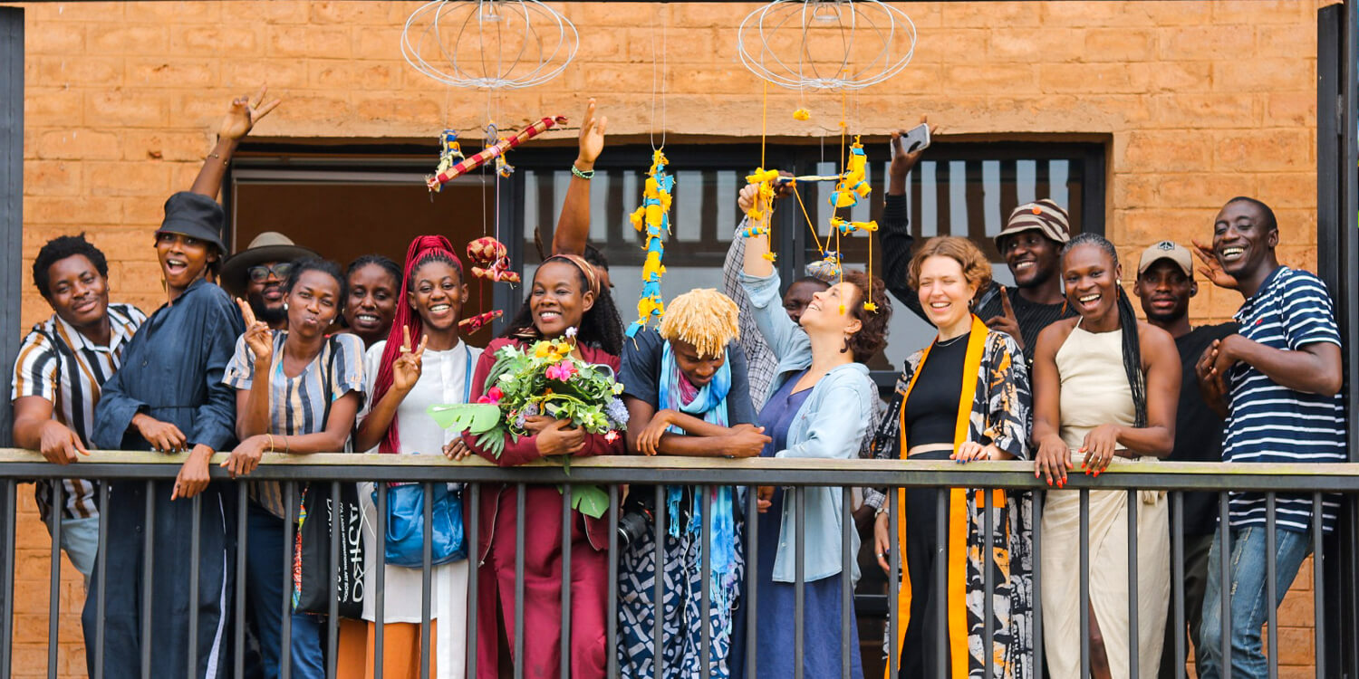 Miriam Bettin with visitors and artists who participated in her exhibition Aso là ´nkí, kí a tó ki ènìyàn – We greet the cloth before we greet its wearer at the G.A.S. Farm House in Ijebu in December 2022.